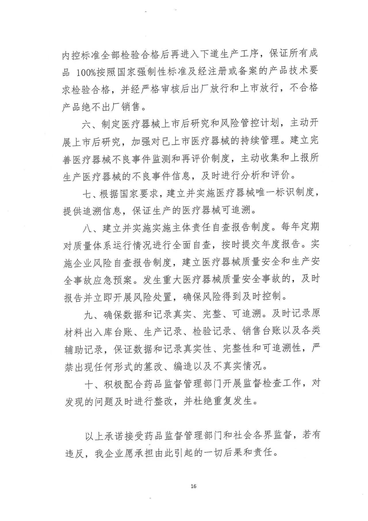 煙臺愛心醫(yī)療器械有限公司醫(yī)療器械質(zhì)量安全主體責(zé)任承認(rèn)書